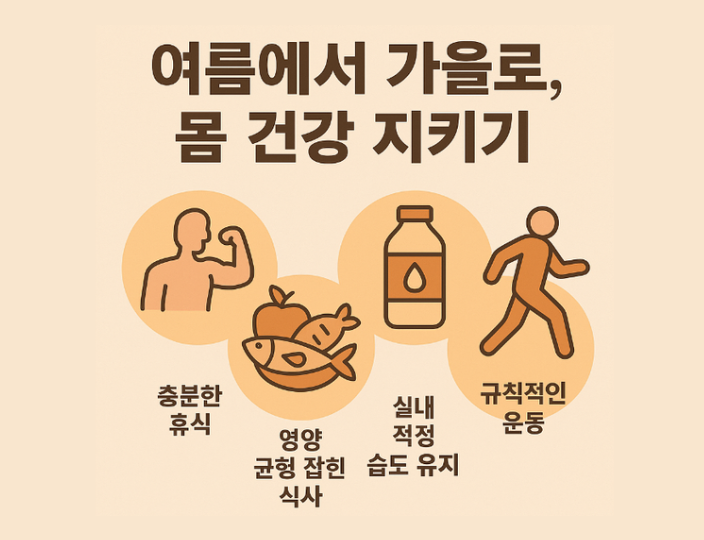 #환절기건강 #면역력관리 #계절성질환 #건강관리법 #수면의중요성 #제철음식 #실내습도 #가벼운운동 #자율신경계 #비타민D #호흡기건강 #건강한생활습관 #예방의학 #웰니스 #건강칼럼 #생활건강정보 #면역시스템 #환절기감기예방 #건강한가을준비